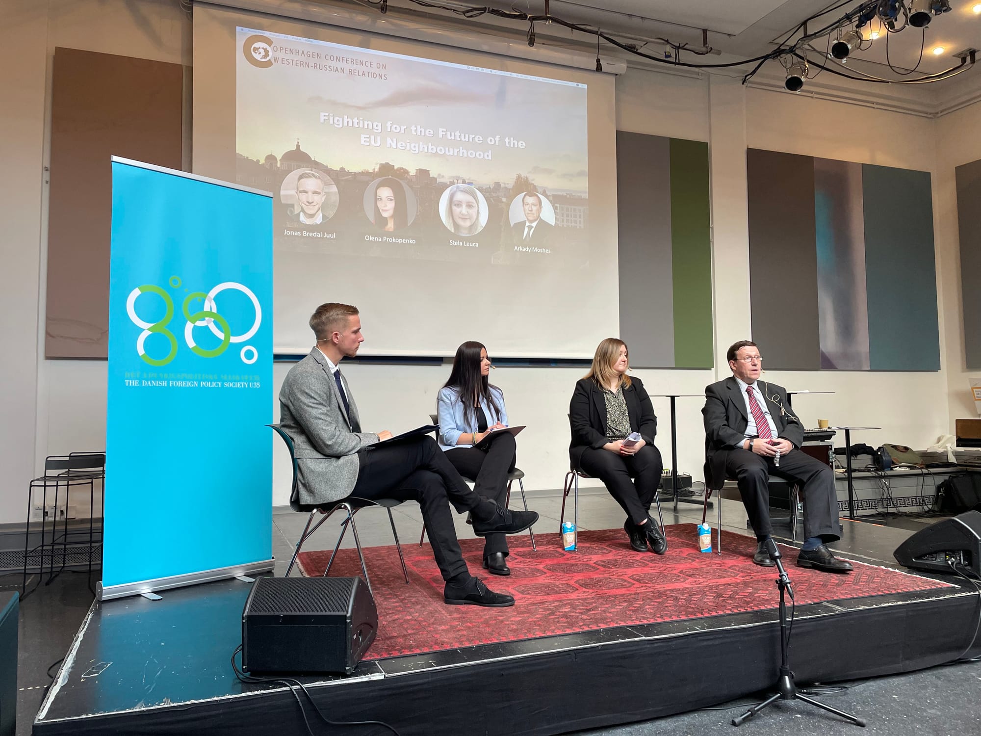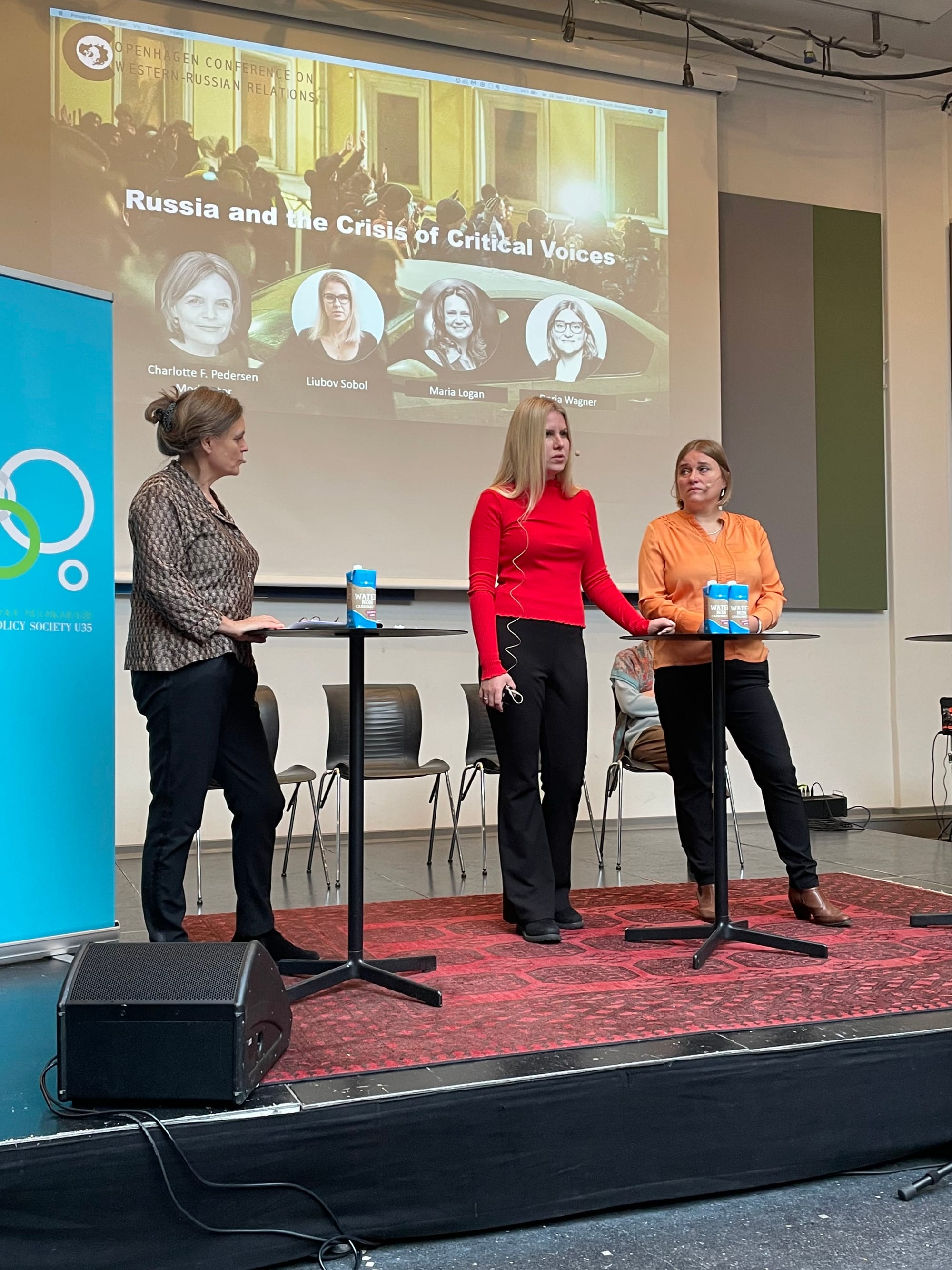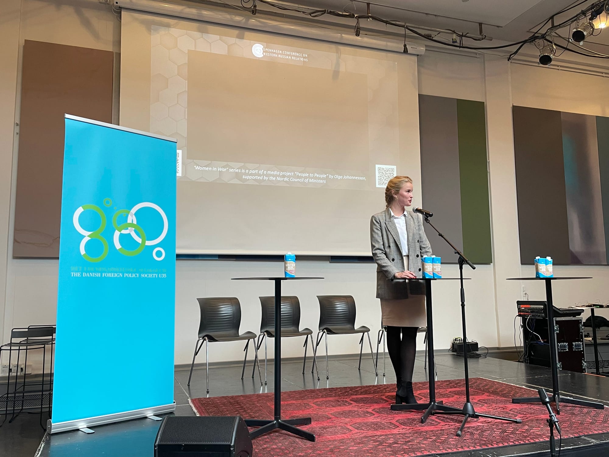 Netop den russiske tilstedeværelse fortæller Celine Emma la Cour mig lidt om. Hun er hovedarrangør, moderator, bestyrelsesmedlem for Det Udenrigspolitiske Selskabs ungdomsafdeling (U35) og dagens konferencier. Indledningsvist forklarer hun, at konferencen var “udfordrende at organisere, fordi alt hvad der har med Rusland at gøre lige nu er yderst kontroversielt”.